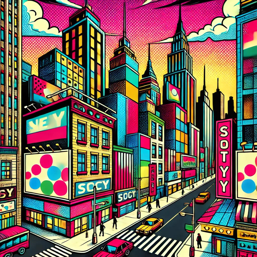 프롬프트 : 팝아트 스타일의 도시 풍경을 그려줘